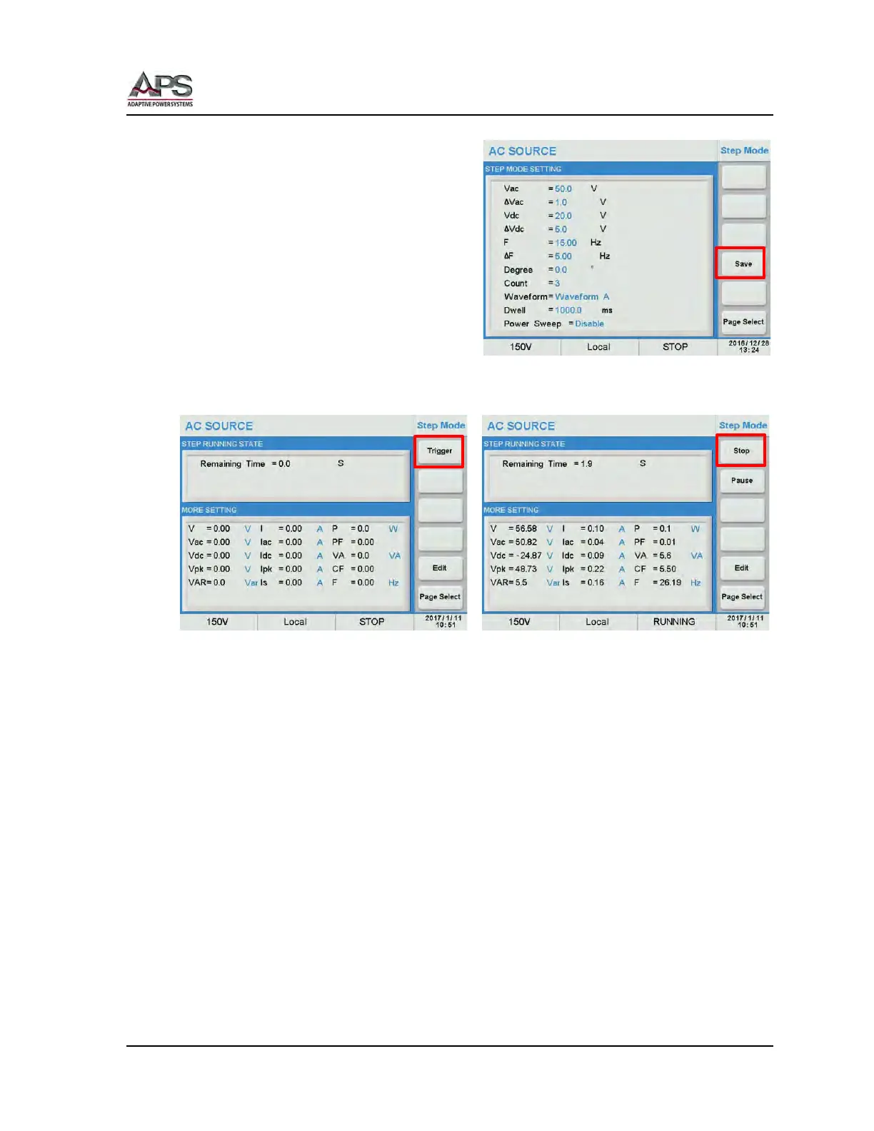 To execute a Step Transient, press the [Trigger] soft key. As the [Trigger] soft key is pressed,
