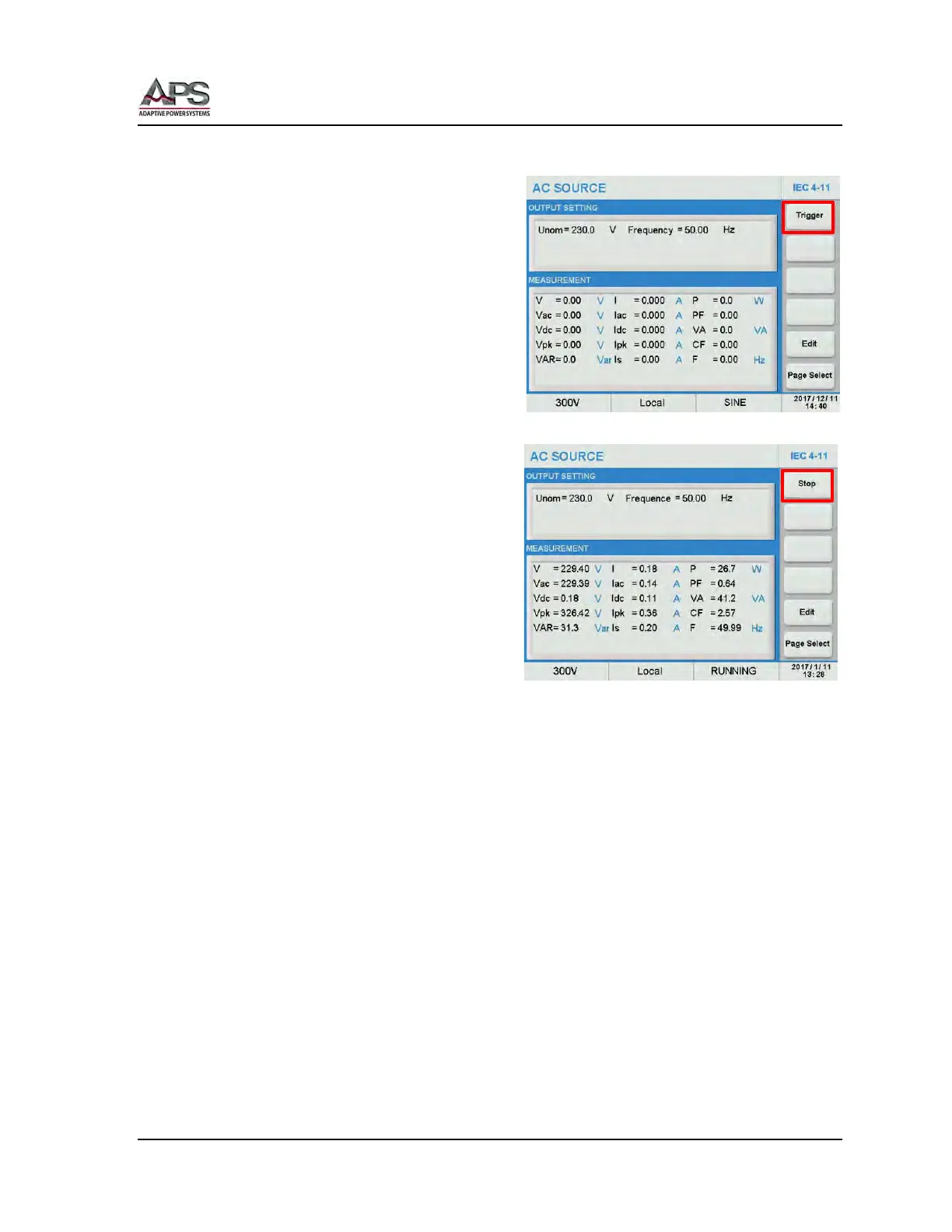 Start the test by pressing the Trigger soft