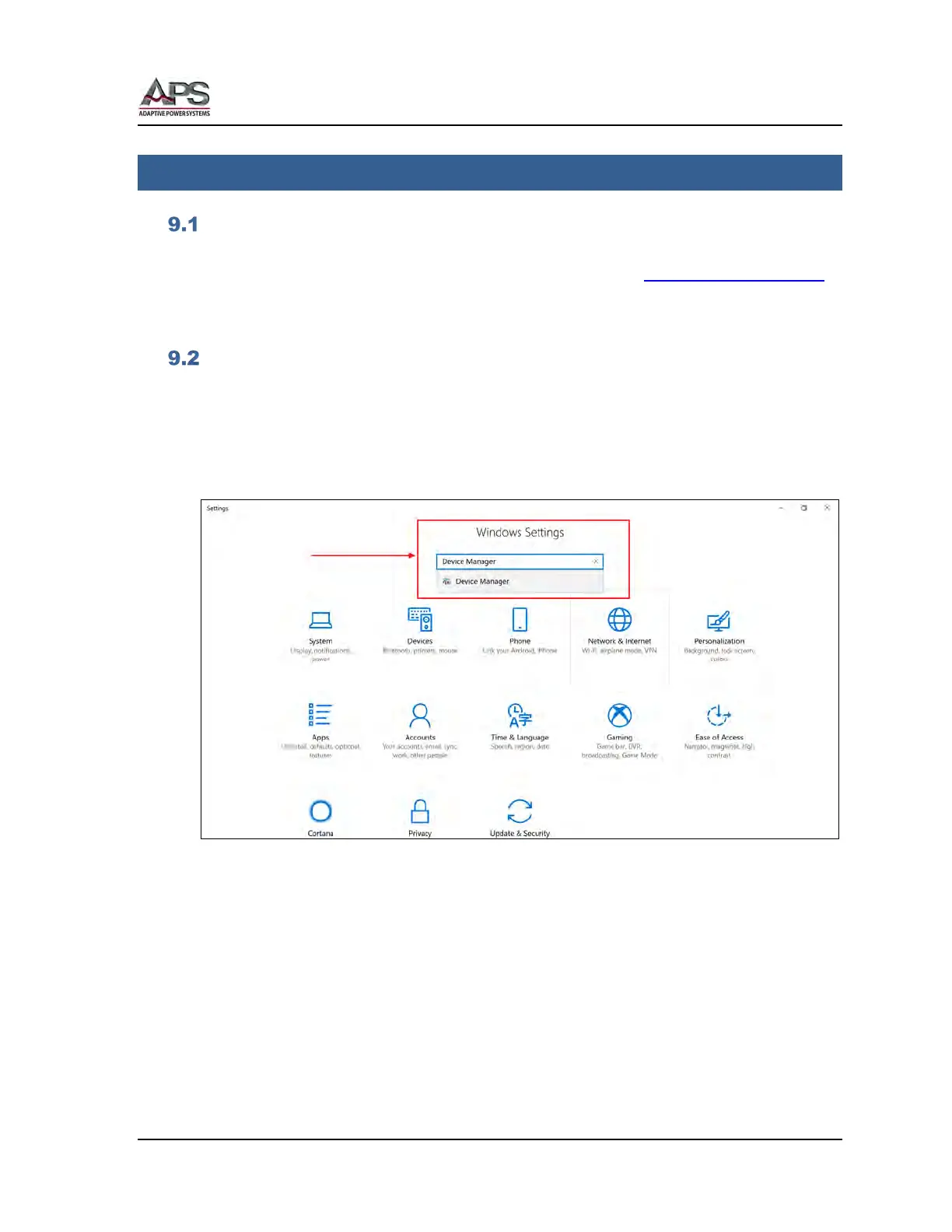To open the Device manager, open Windows, Settings and use the search box to locate