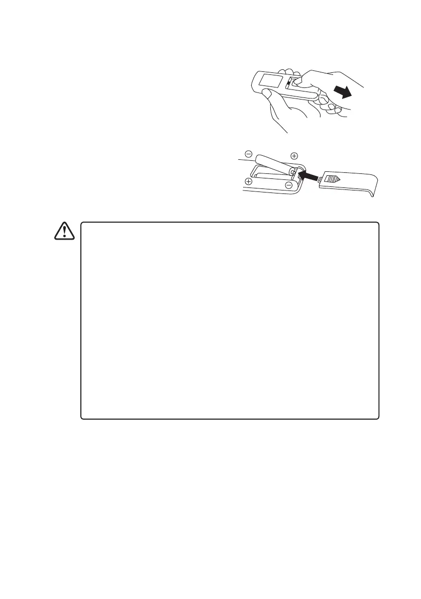 • Fjernkontrollen fungerer ikke med tomme batterier. Bytt ut begge batteriene