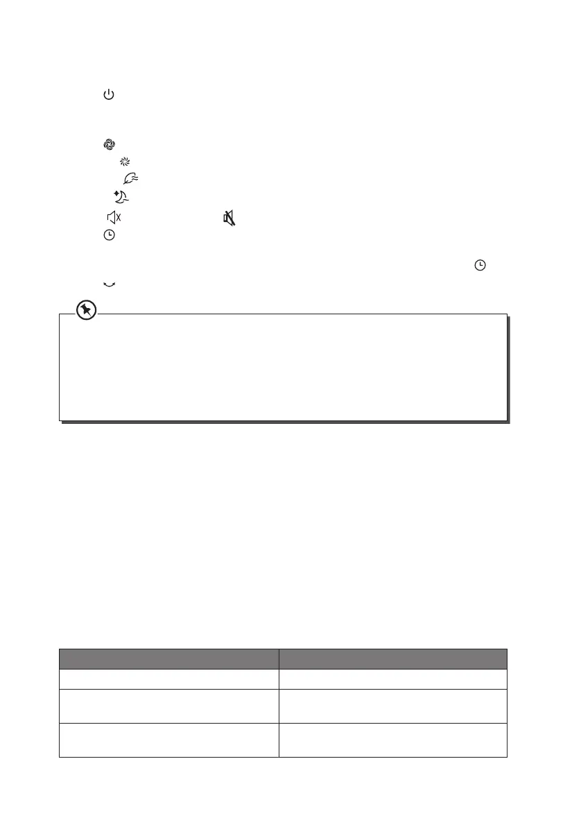 • Trykk -knappen for å slå tårnviften av eller på.