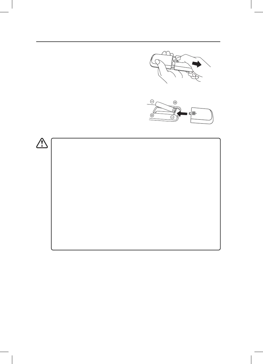 • Fjernkontrollen fungerer ikke med tomme batterier. Bytt ut begge batteriene
