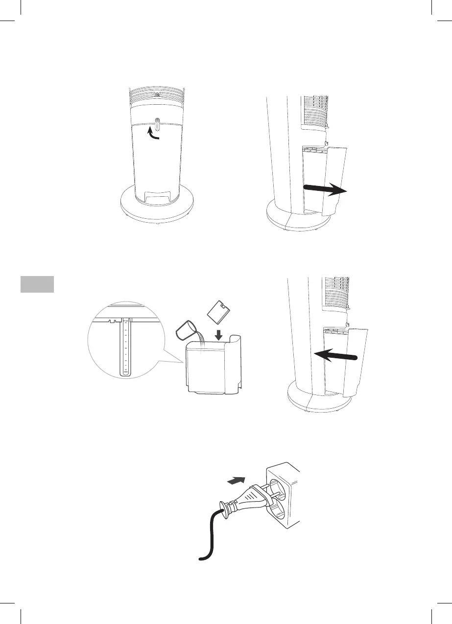 5. Kaada vettä (ei yli max-tason) and ja aseta jäälaatikko/laatikot) vesisäiliöön. Liu’uta