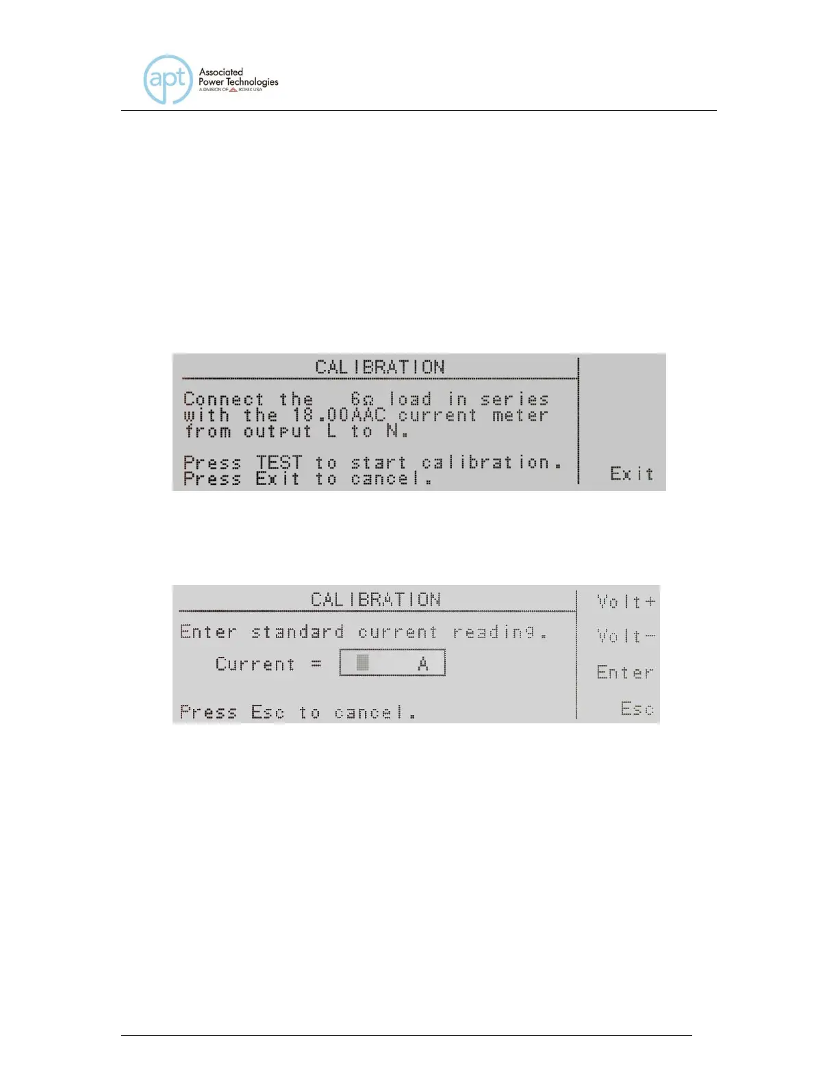 next calibration parameter Current xx.xA. If you press the Esc soft key you will