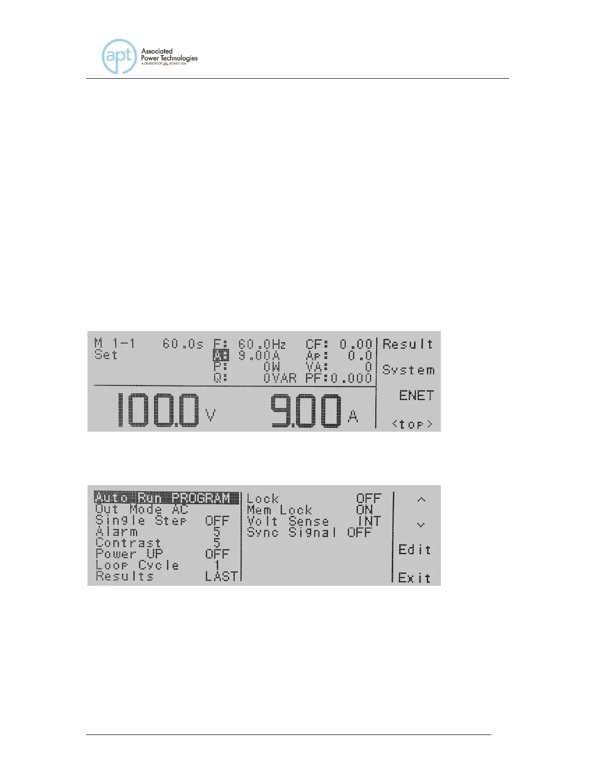 soft keys read Result, System, and <top>. The screen should be as follows