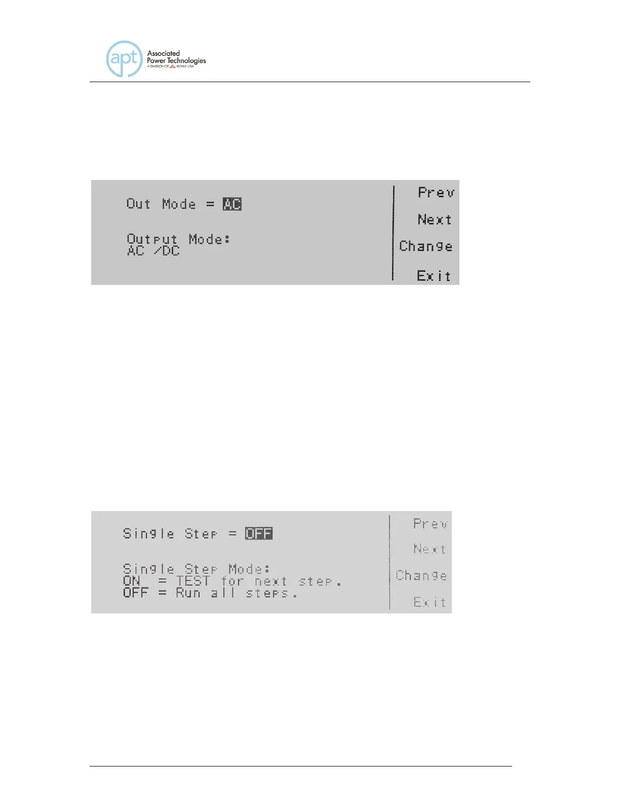 Press the Change soft key to toggle the Single Step Mode to ON/OFF. To save