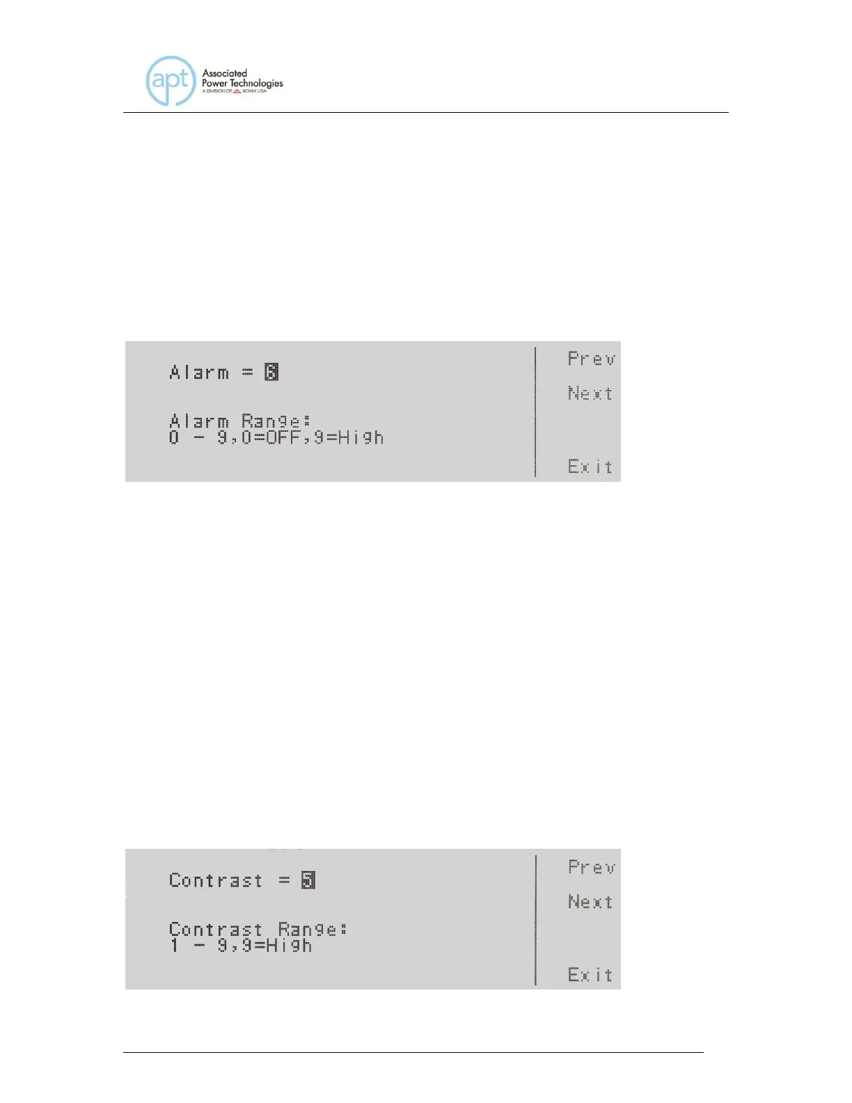 Use the , soft keys to navigate to the Alarm parameter. Pressing the Edit soft