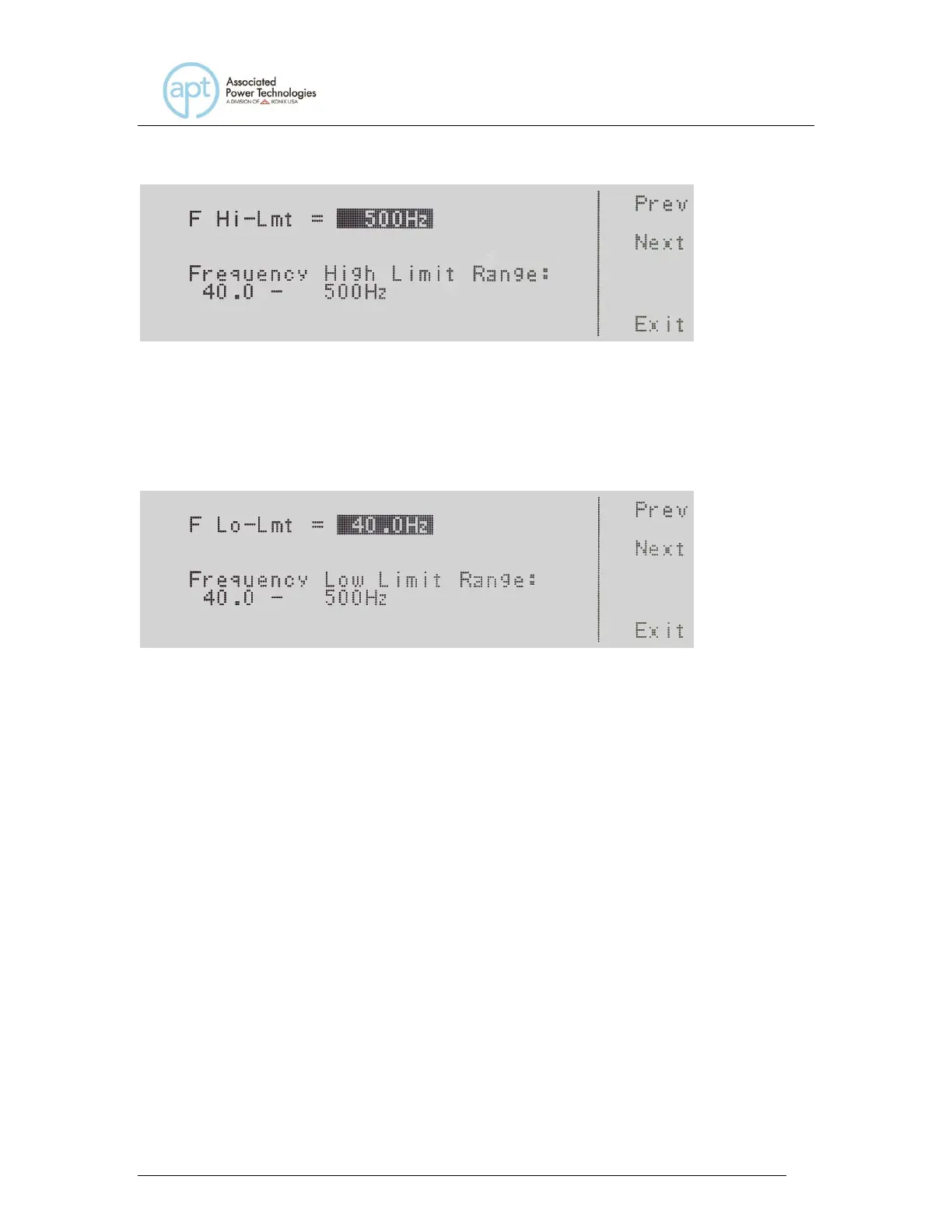 Frequency Lo Limit Range: indicates the frequency range that can be