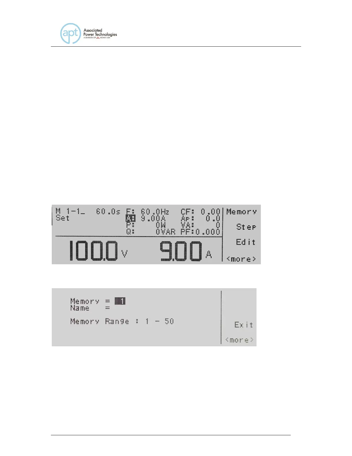 screen. You can select 1 through 50 memory locations.