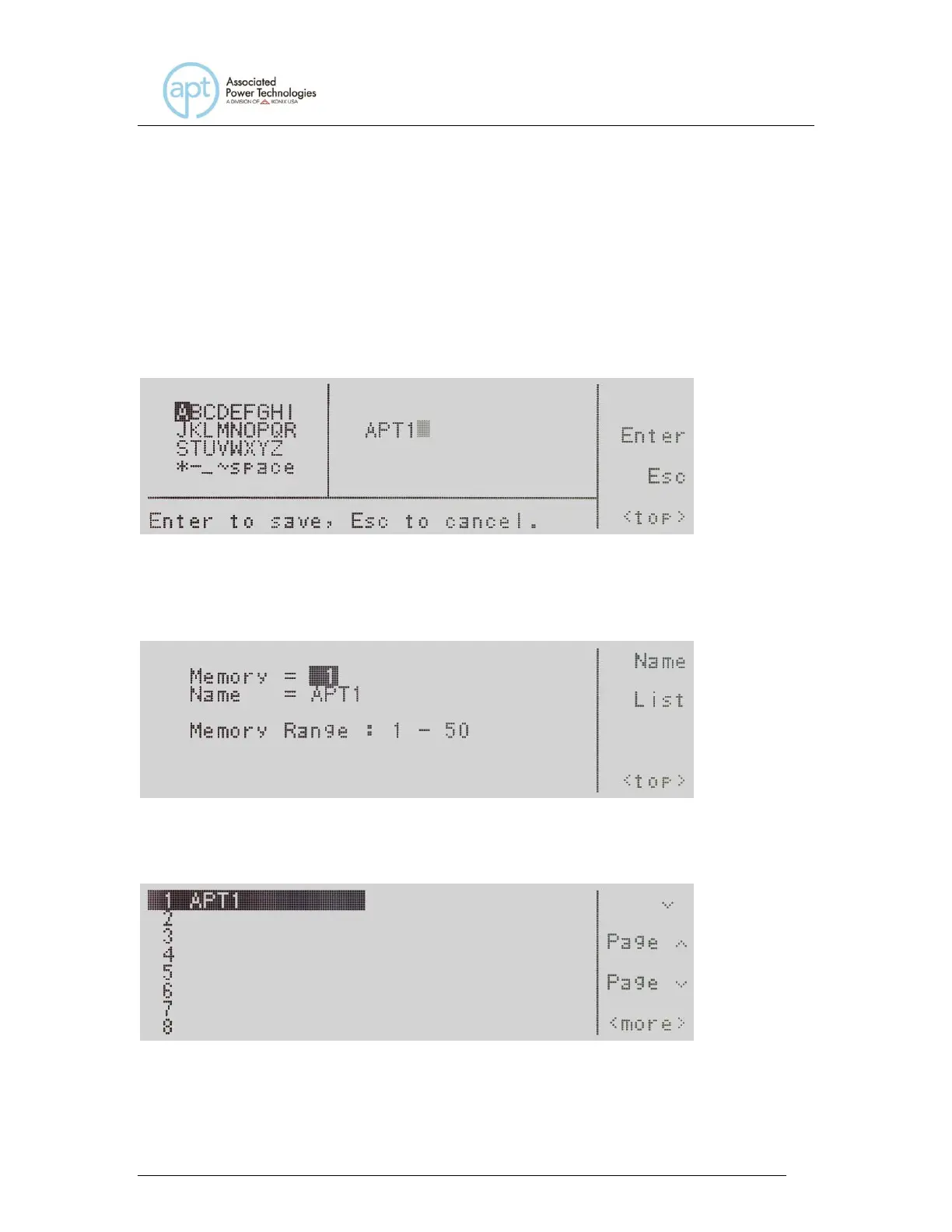“Enter to save, Esc to cancel”. To accept the data entry select the Enter soft key,