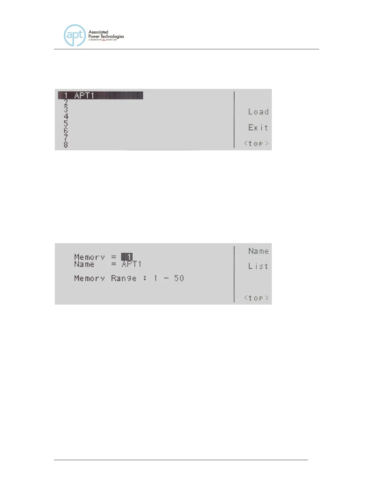 memory name. Press the <top> soft key to use the > soft key and soft key.