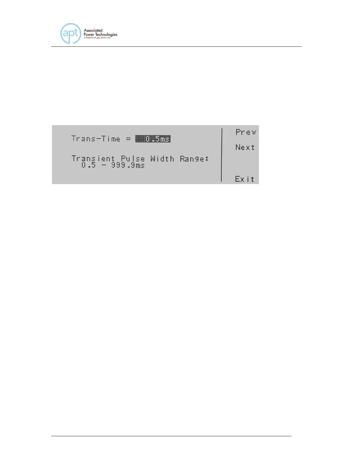 Trans-Time = indicates the Transient time that is programmed into the instrument.
