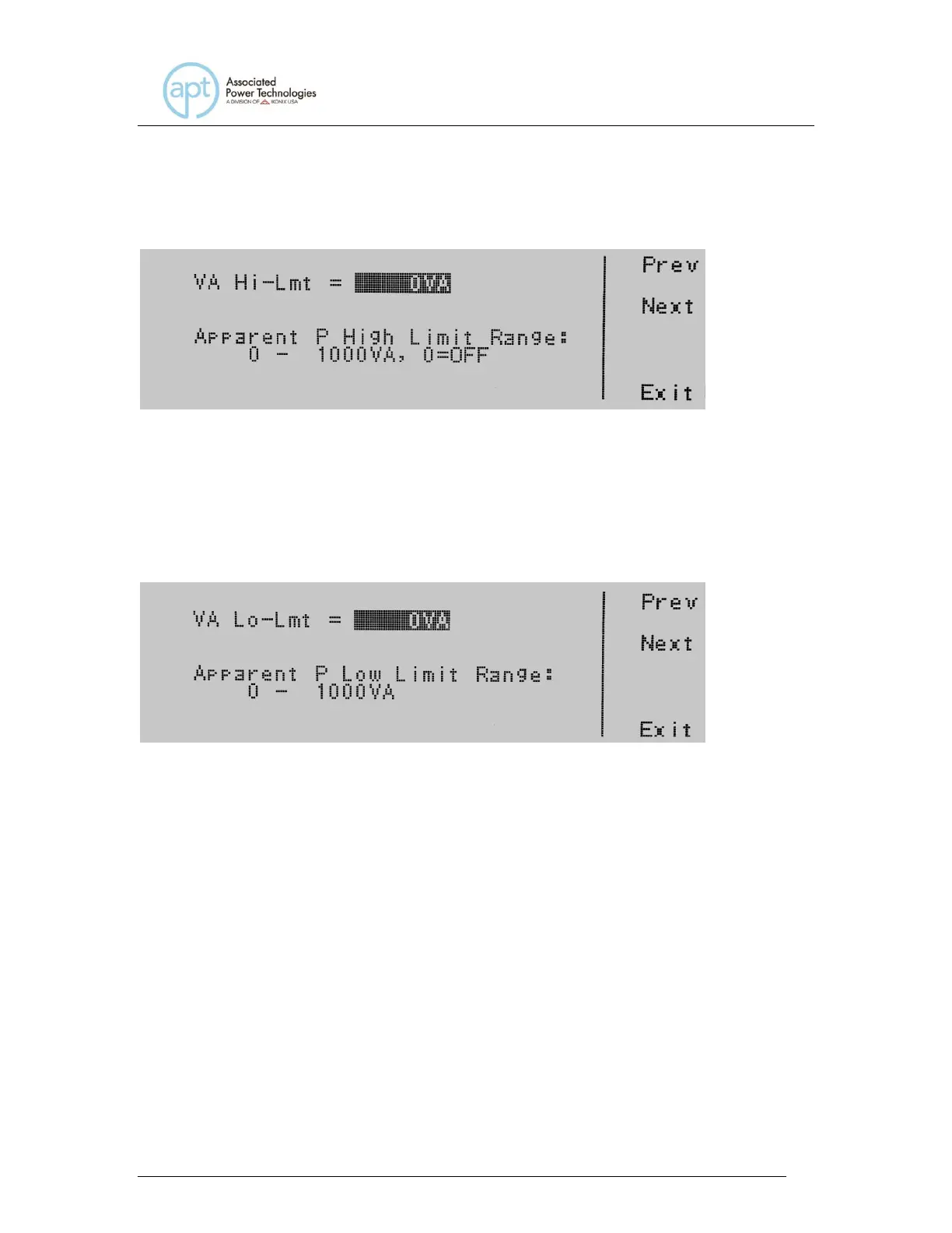 VA Lo-Lmt = indicates the apparent power low limit that is programmed into the