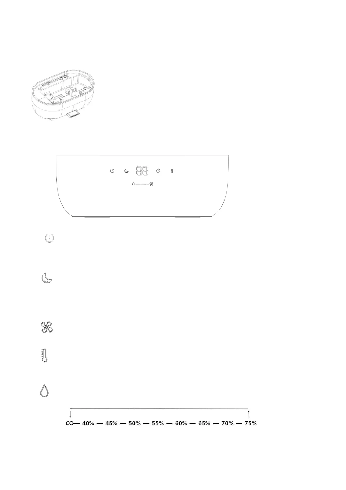 1. painallus virtapainikkeesta kytkee ilmankostuttimen PÄÄLLE. Näyttö näyttää nykyisen