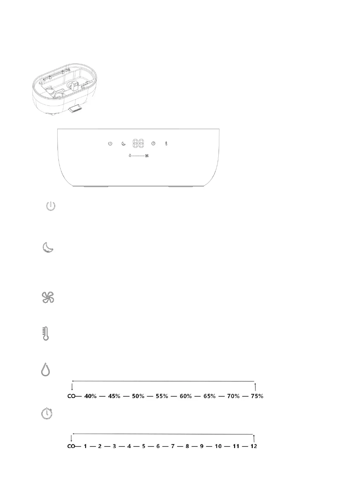 Den ønskede relative luftfugtighed kan indstilles fra 40% til 75% i trin på 5% eller CO for