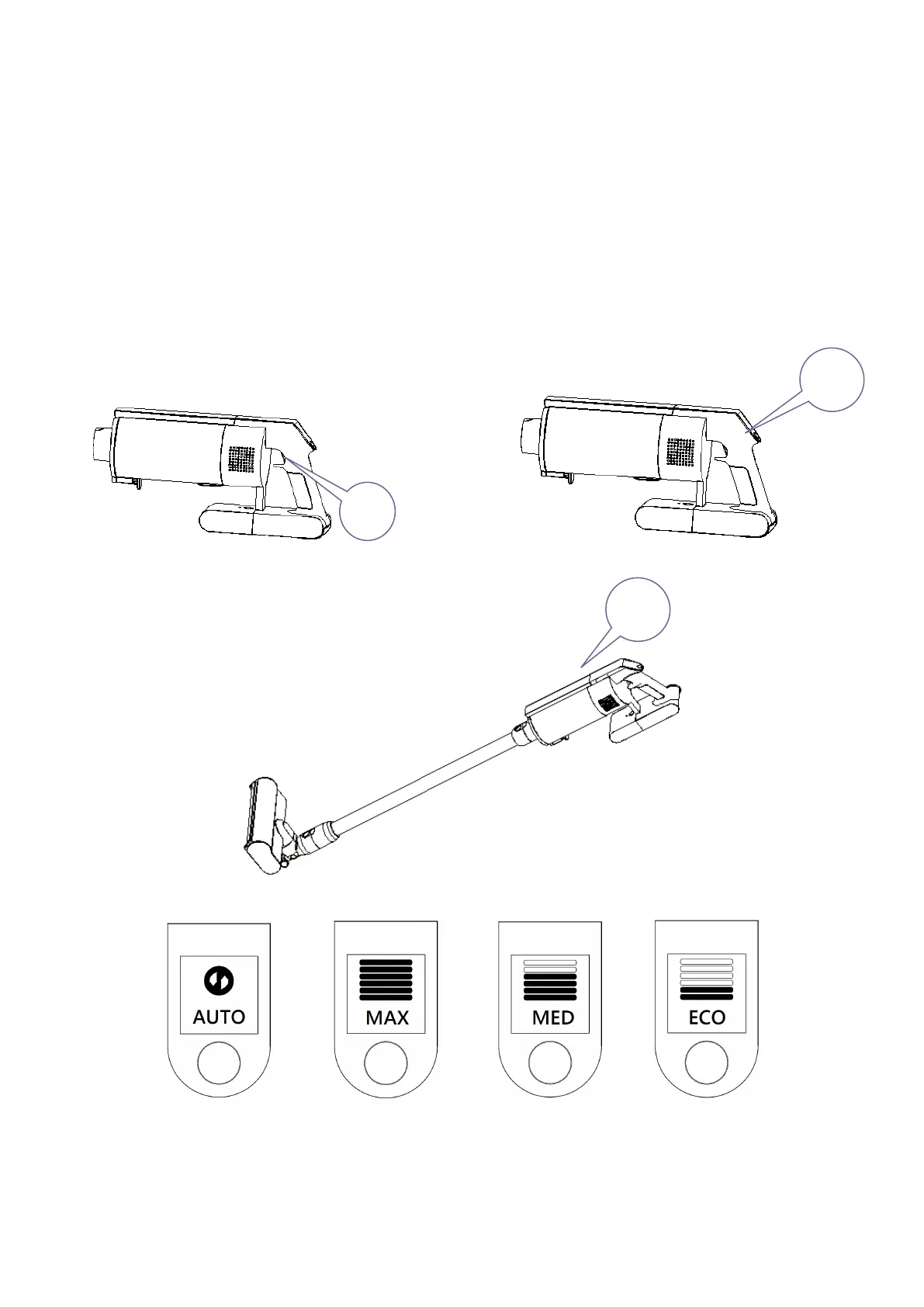 ulike rengjøringsmoduser avhengig av overflaten som skal rengjøres (gulv eller teppe). Trykk inn