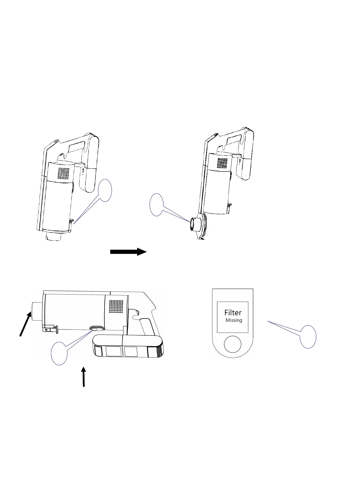 OBS! Når du har tatt ut HEPA-filteret og støvkoppen, vil OLED-skjermen (nr. 4) vise meldingen