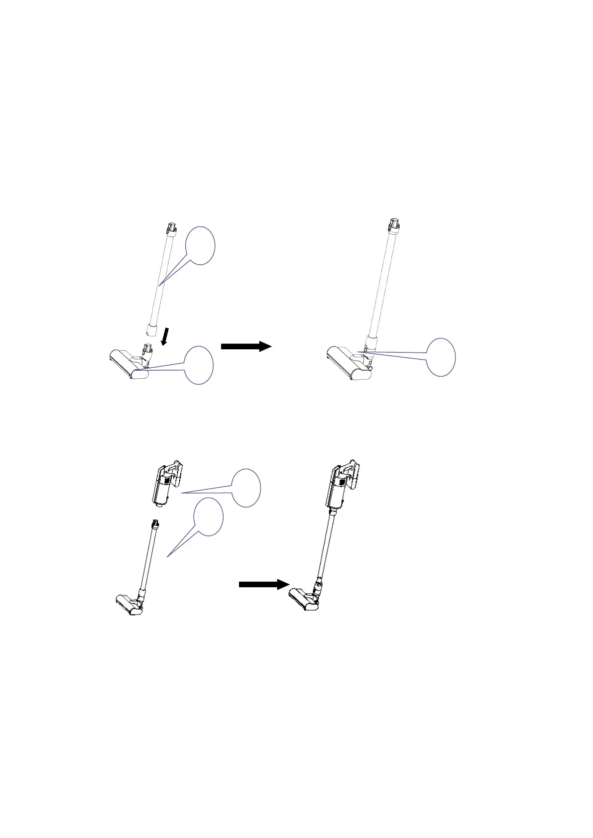 Attach the aluminum tube (NO.1) to the floor brush connector (NO.2), as shown below, unit release