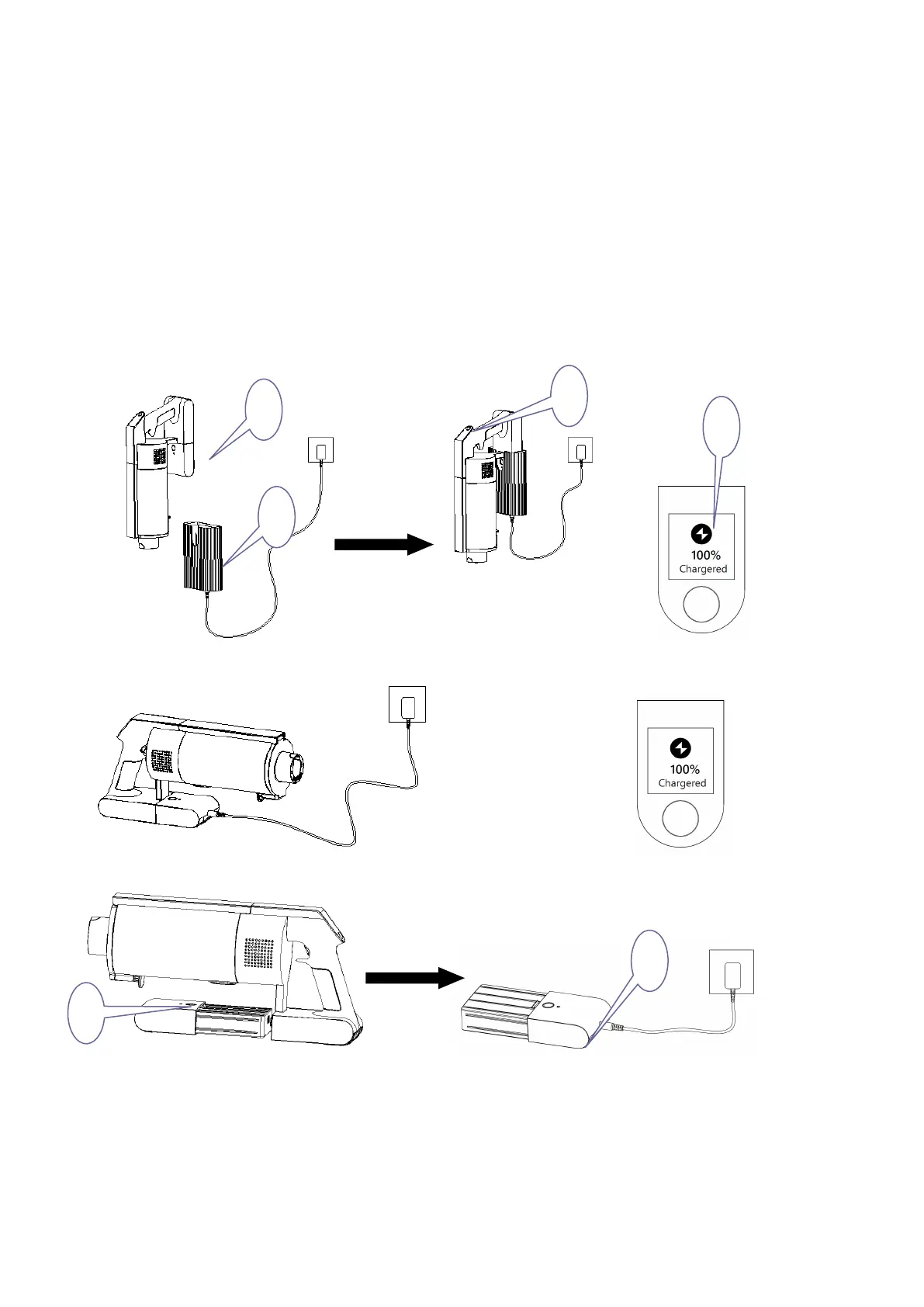 5.1 Laddningsläge 1: Häng huvudenheten (nr 1) på väggfästet (nr 2). Anslut laddaren till batteriet och