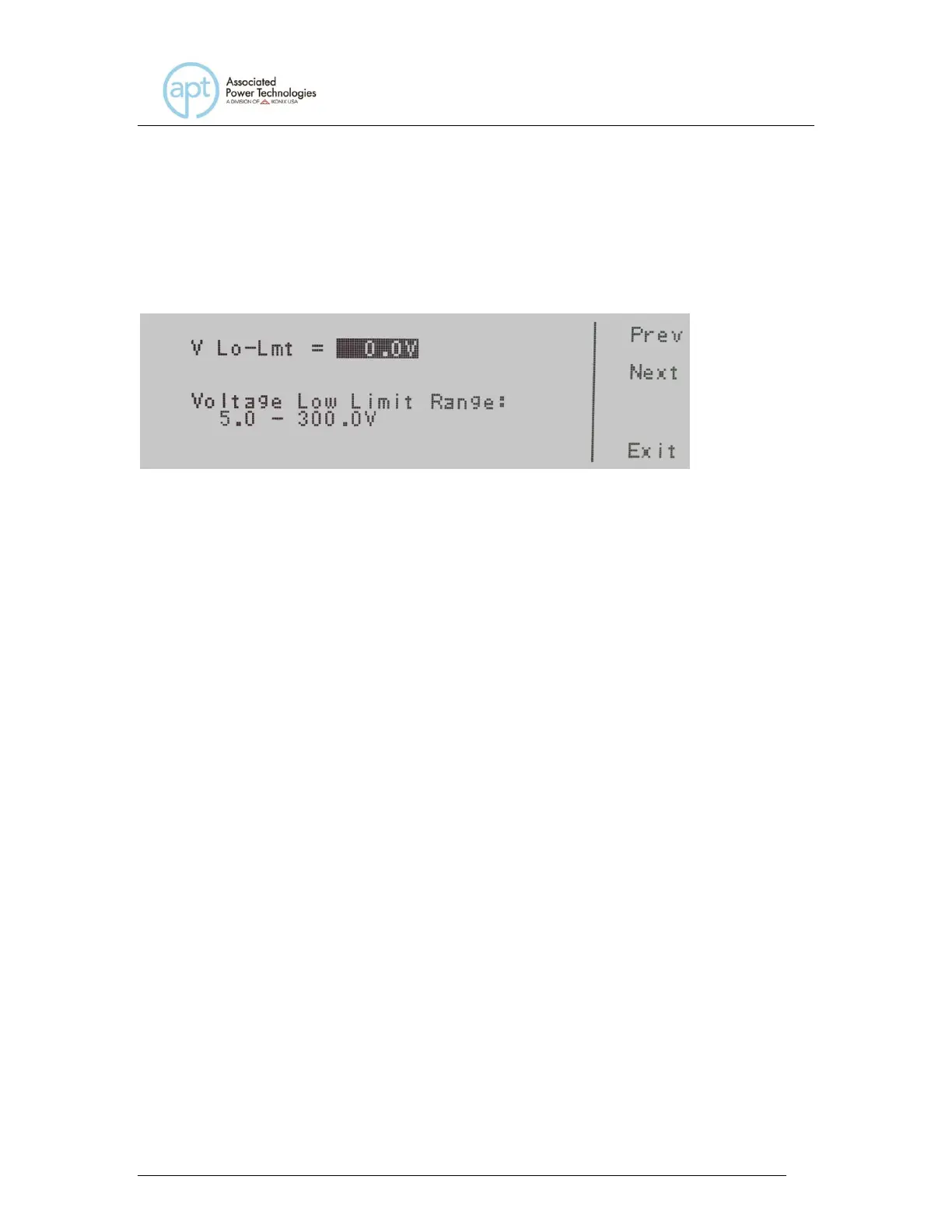Voltage Low Limit Range: indicates the voltage range that can be programmed