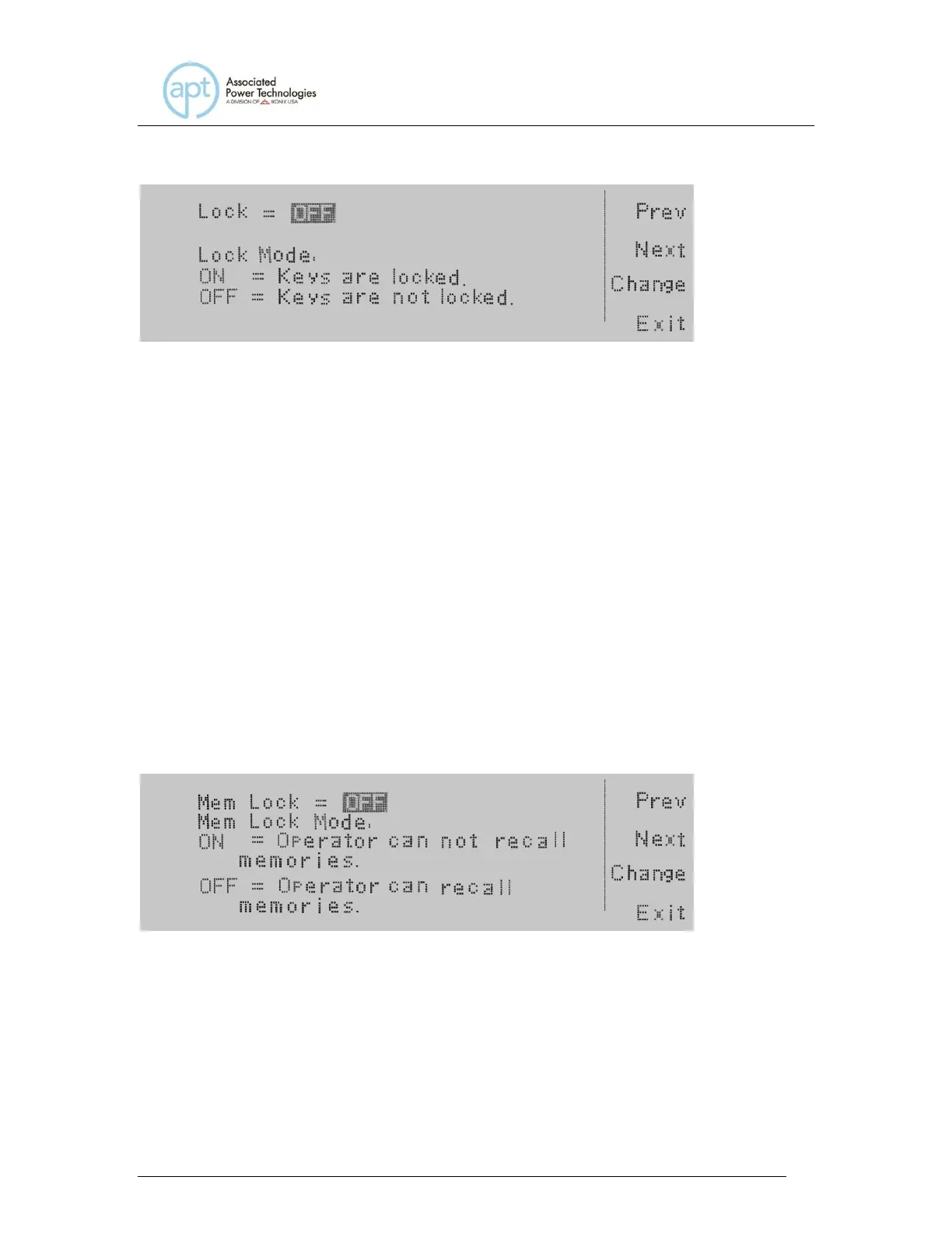 The Mem Lock Modes available are ON and OFF. Press the Change soft key to