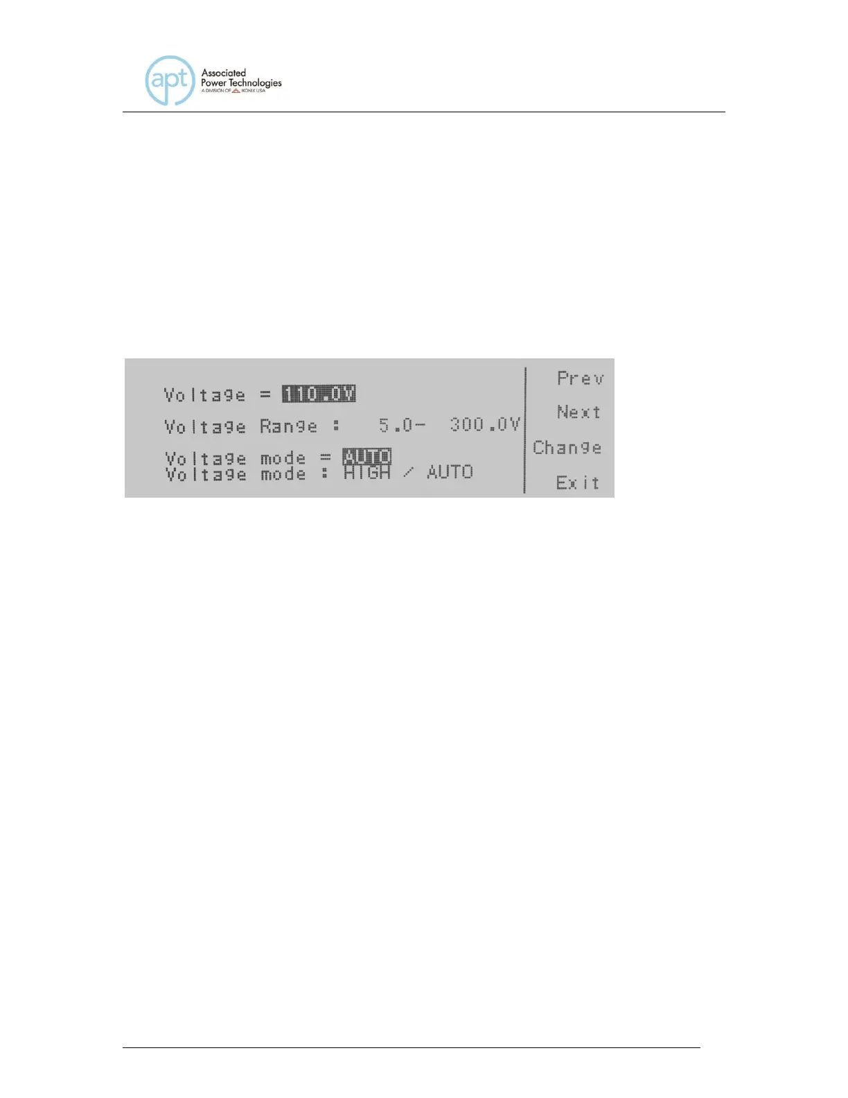 or press the Esc soft key to move back to the voltage parameter screen. When