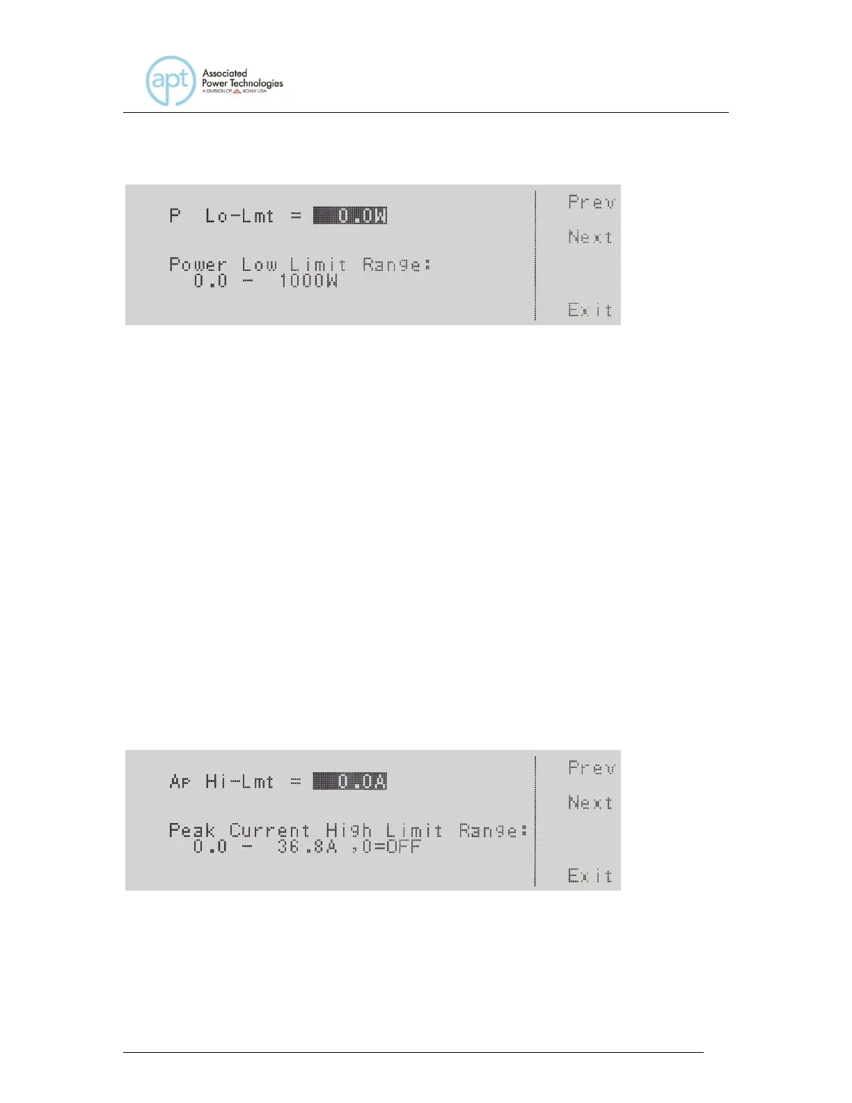 Use the , soft keys to navigate to the Ap Hi-Lmt or Ap Lo-Lmt parameter (only