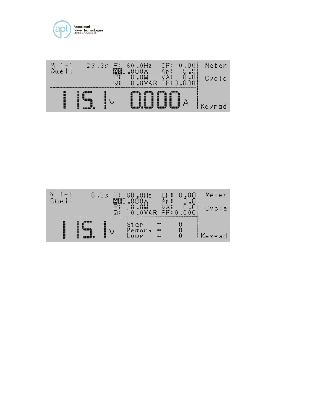 meter displays or show the cycles by pressing the appropriate soft keys. The