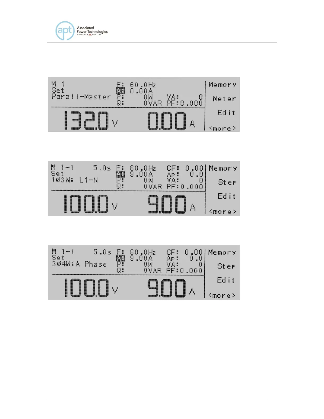 Pressing the Phase key allows the operator to view the meters for each individual