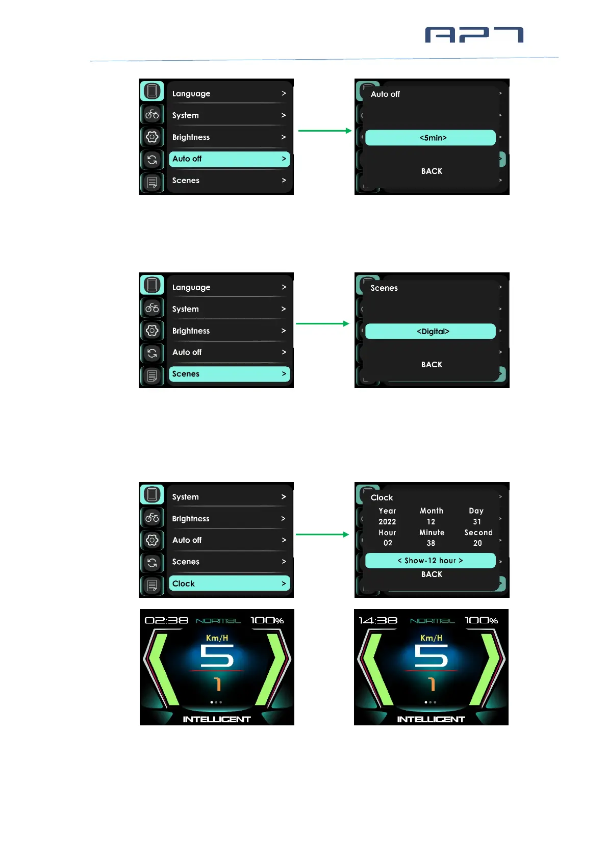 This item can set date and time. You can choose Show-12 hour, Show-24 hour on