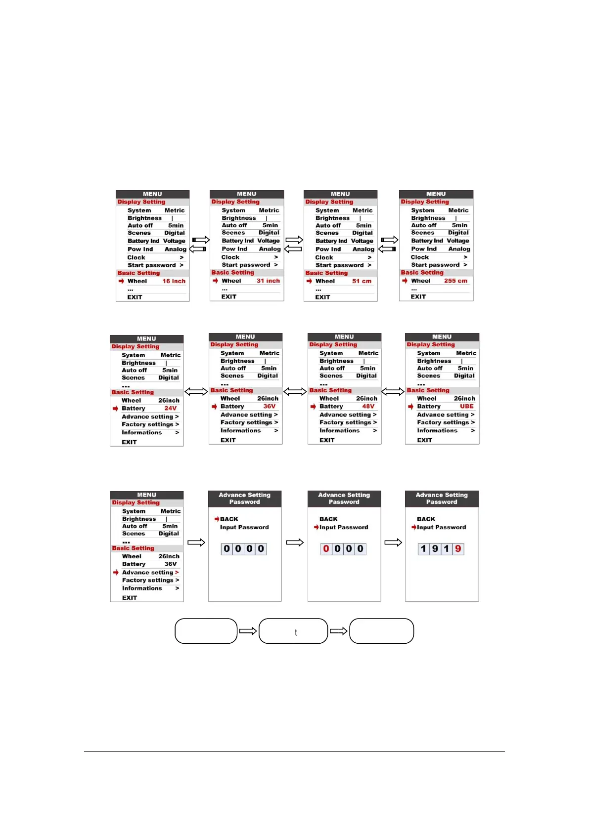 8.9 Wheel : Press UP/DOWN can change the wheel setting, optional wheel diameter is