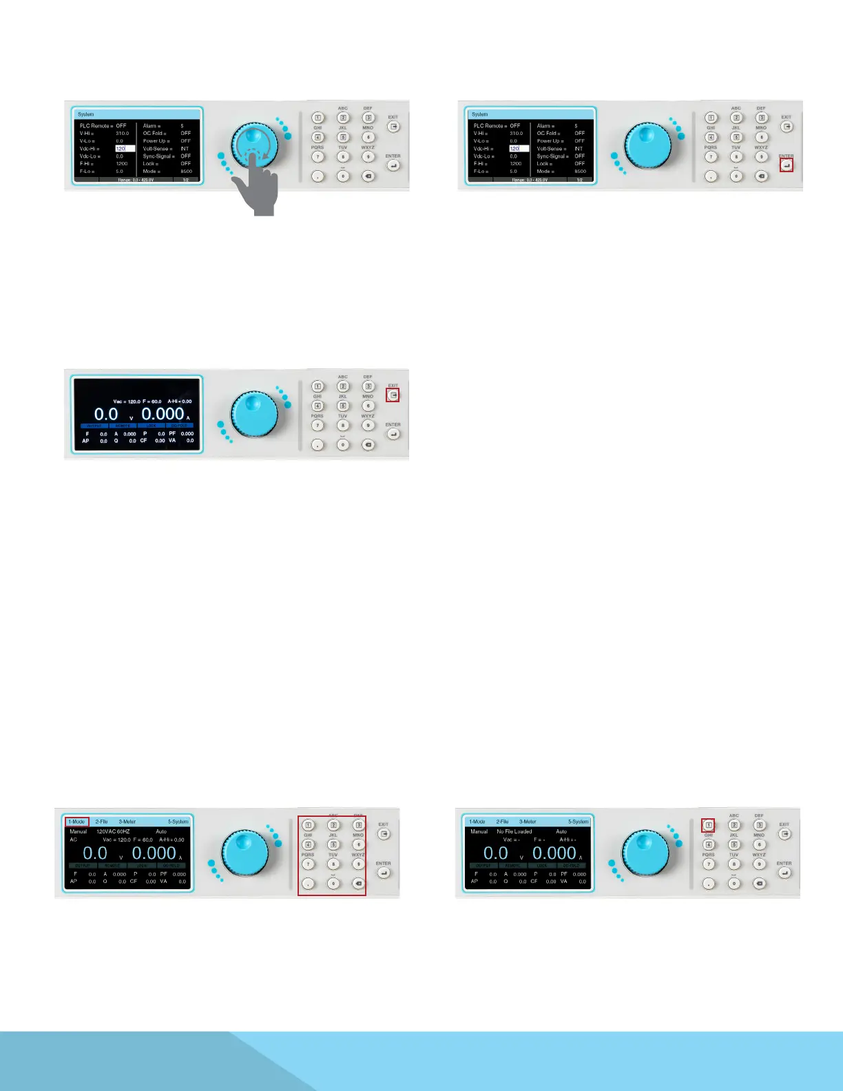 To program a test le, you must rst specify the output mode. This power source will save the test les for