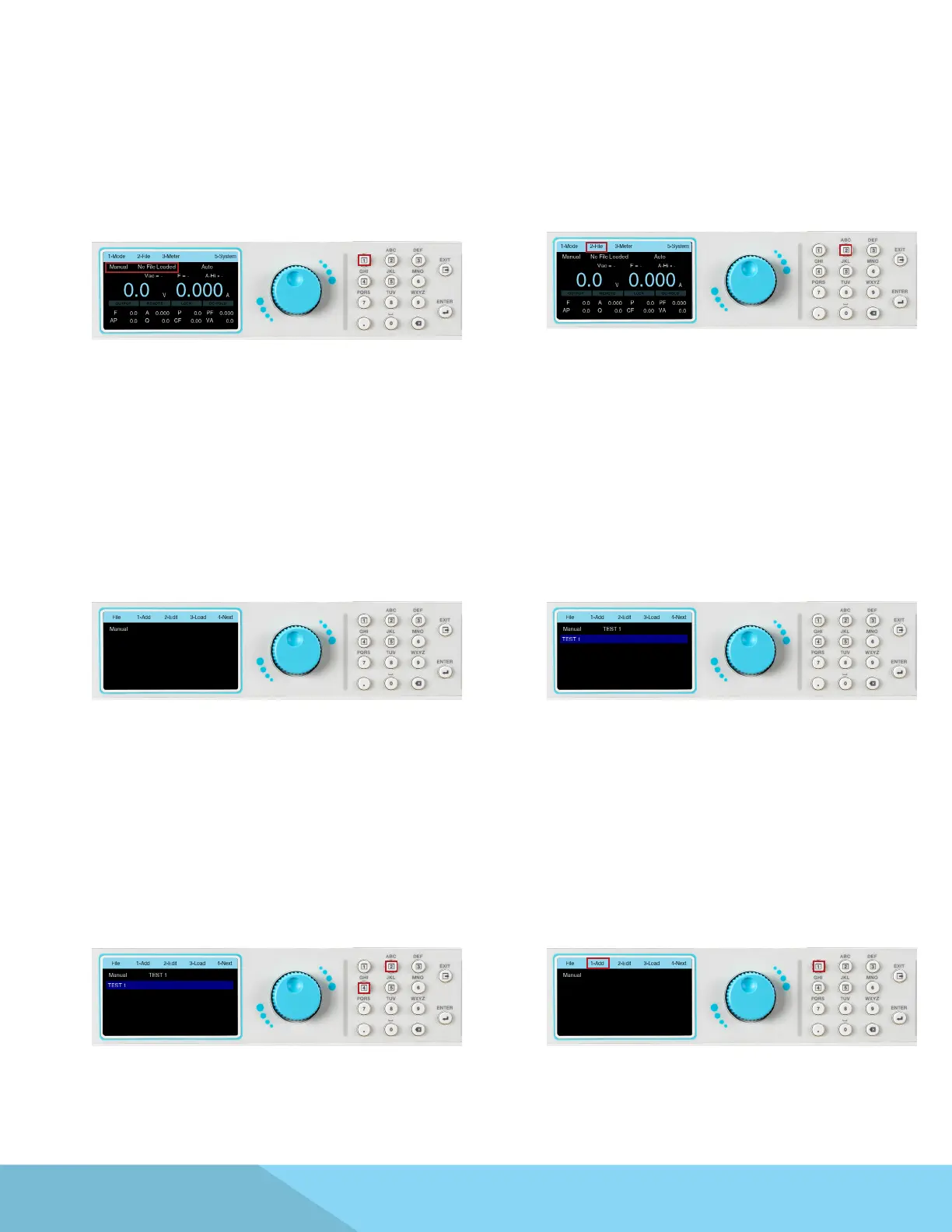 selections to Add, Edit or Load a test le on the