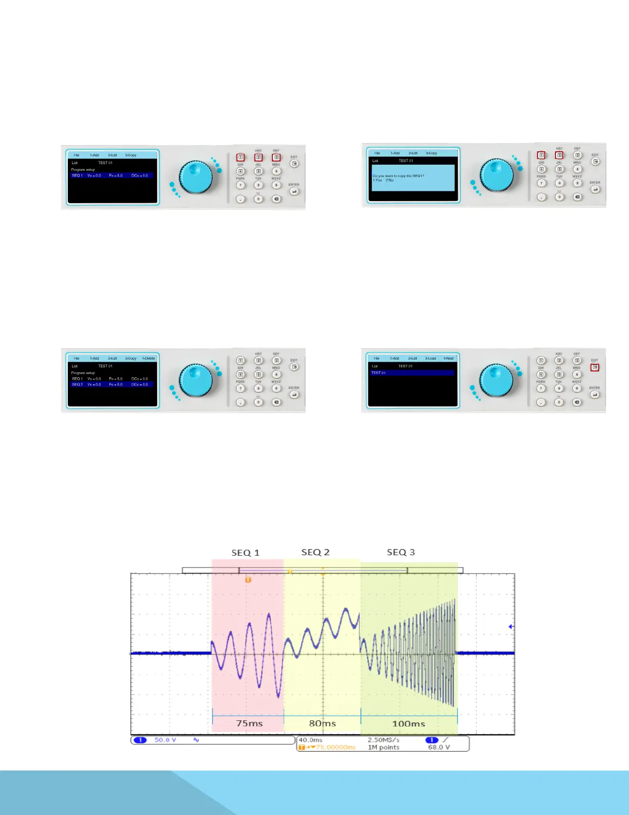 grid faults and disturbances. A typical waveform for List Mode with three sequences will perform as