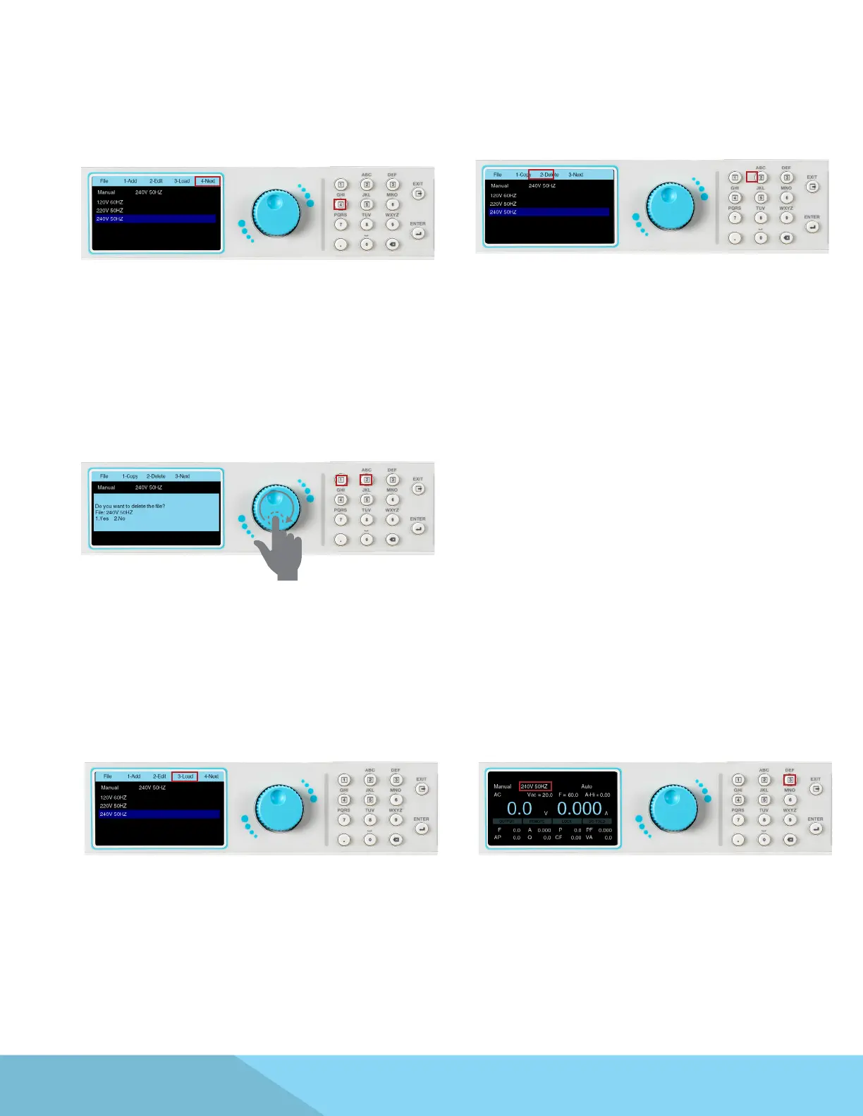the File menu to view the list of test les. Press