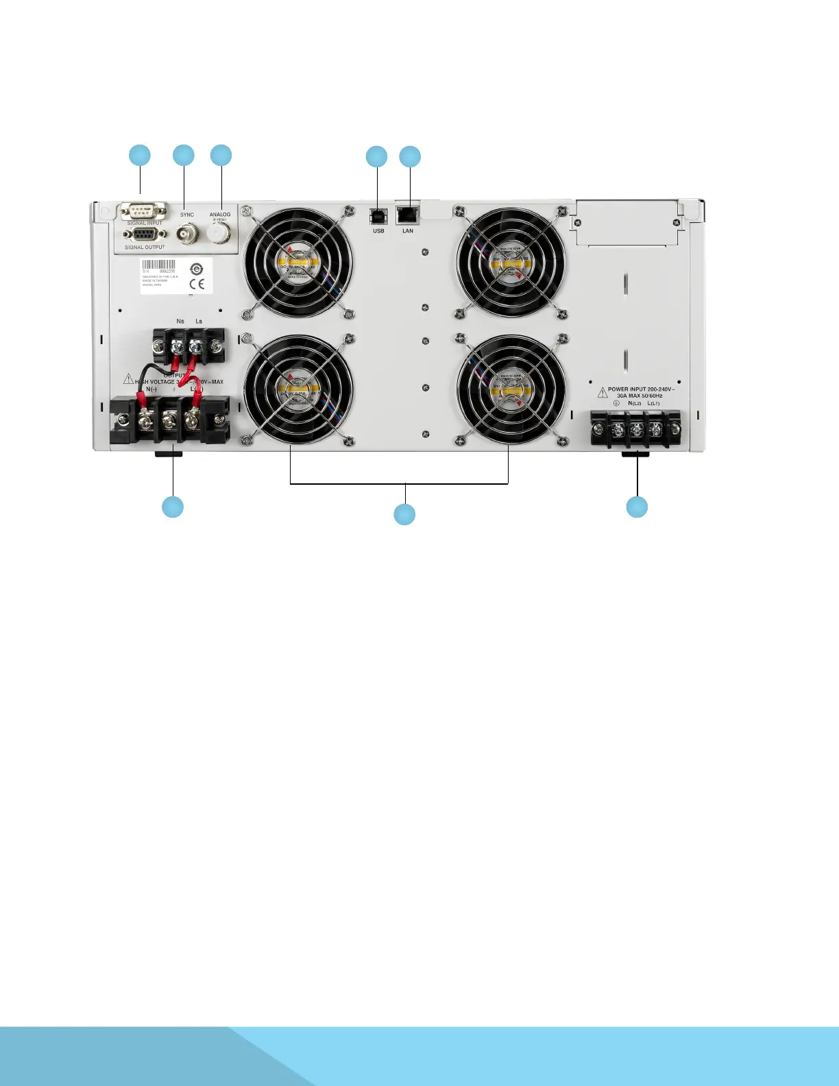 8. Output Terminal Block – Terminal block to connect output power lines for the device under test