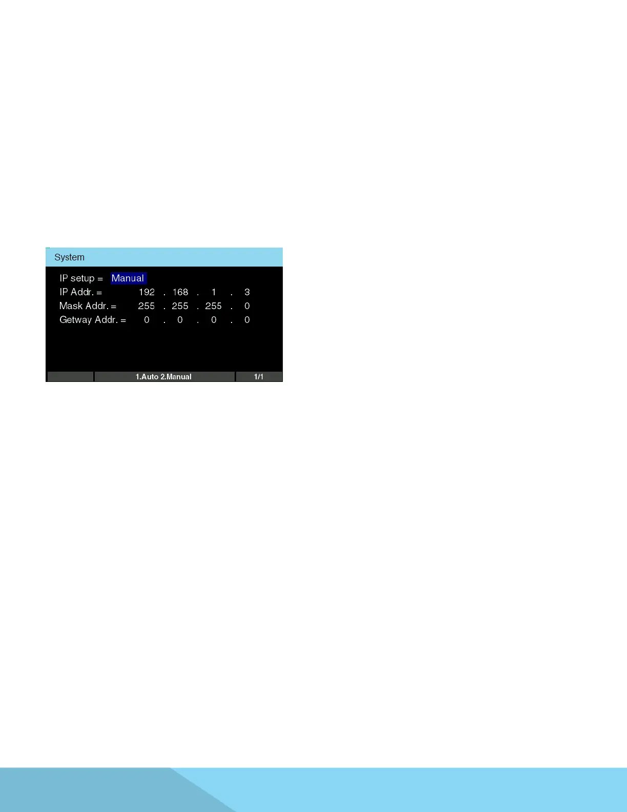 Manual setup of LAN congurations is also available. The LAN Cong parameter can be accessed from the