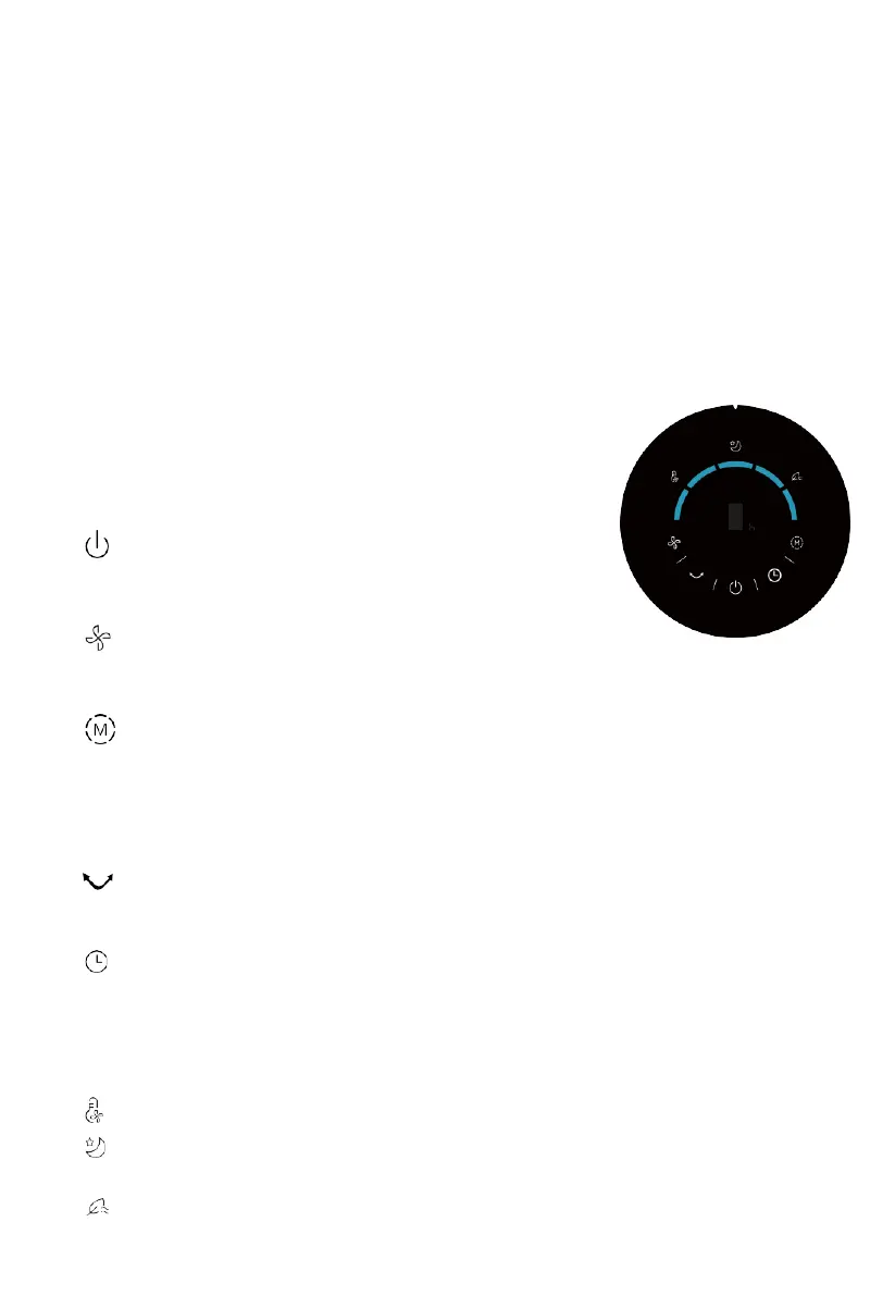 2. “ ” Valo päällä,käynnistä lepotuulitila, ja tuuletin säätää vaihteen kierroksen