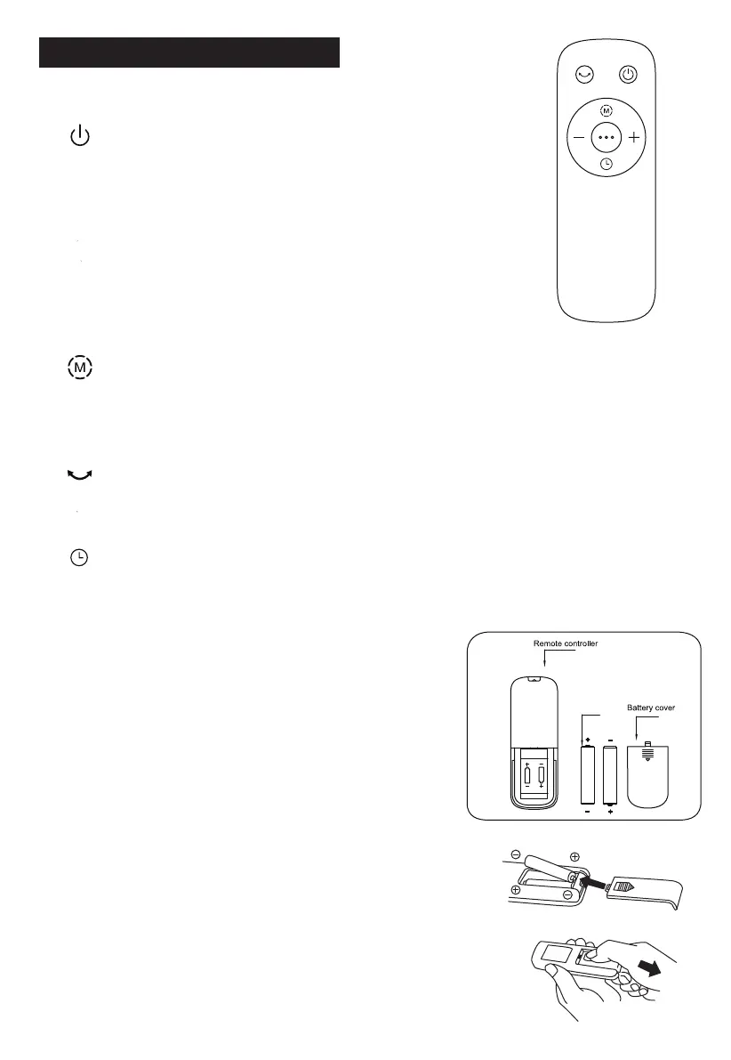 After the fan has started, press this key to select oscillation mode. The lights on the