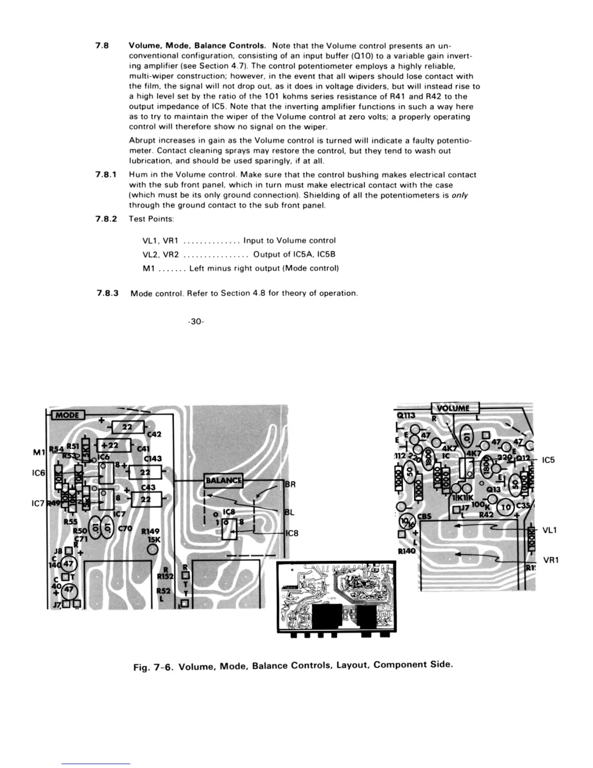 APT Holman - Volume, Mode, and Balance Control Issues; Hum in Volume Control Diagnosis; Volume Control Circuit Test Points; Mode Control Troubleshooting