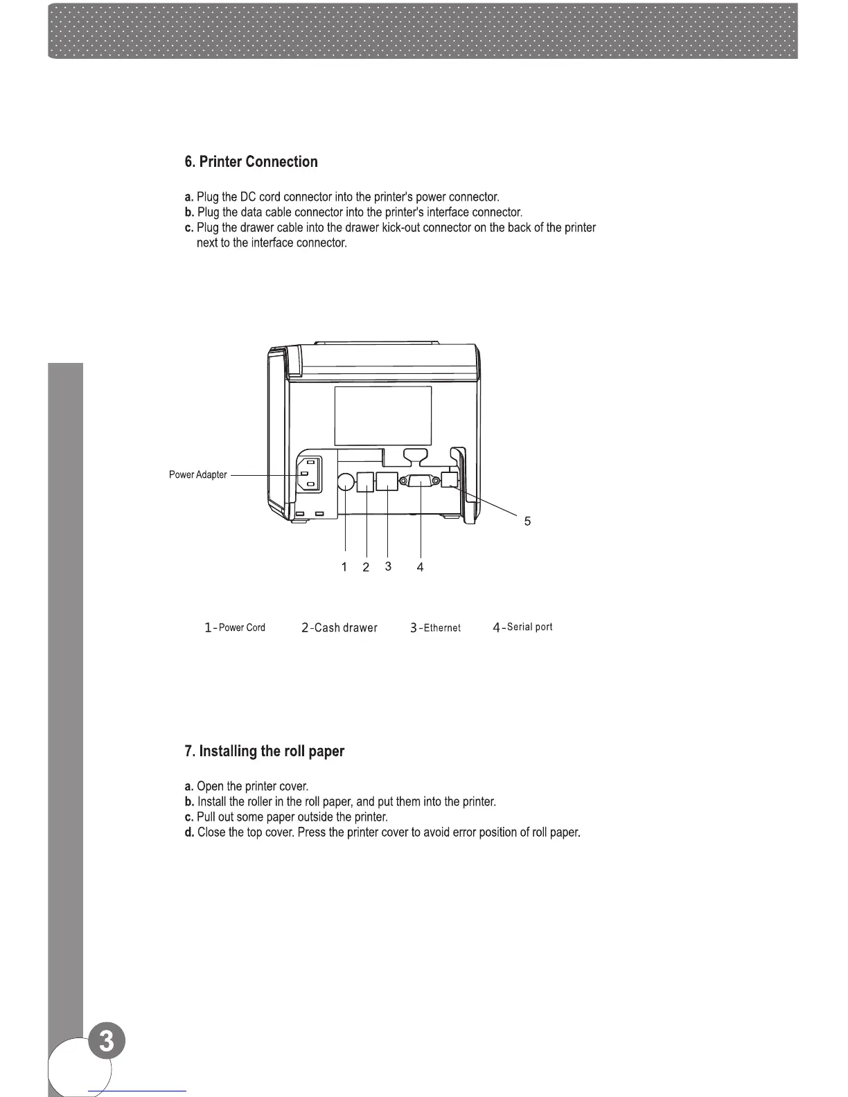 APT TRP80USE - Printer Connection; Connection Procedure; Installing the Roll Paper; Paper Loading Guide