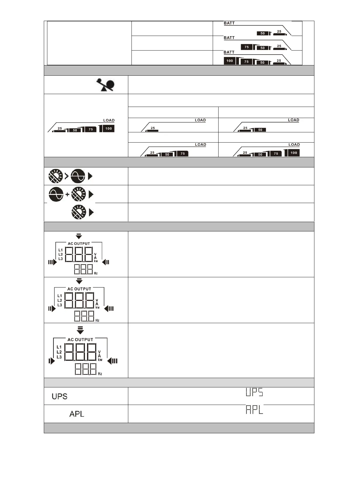 Indicates the load level by 0-24%, 25-49%, 50-74% and 75-100%.