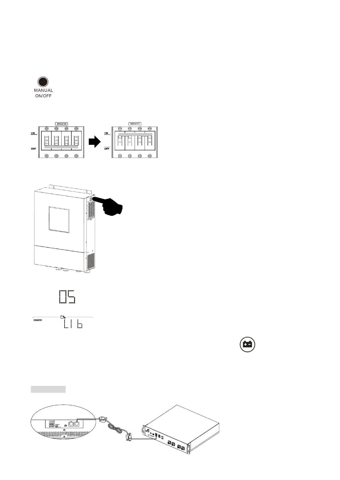If communication between the inverter and battery is successful, the battery icon on LCD display will