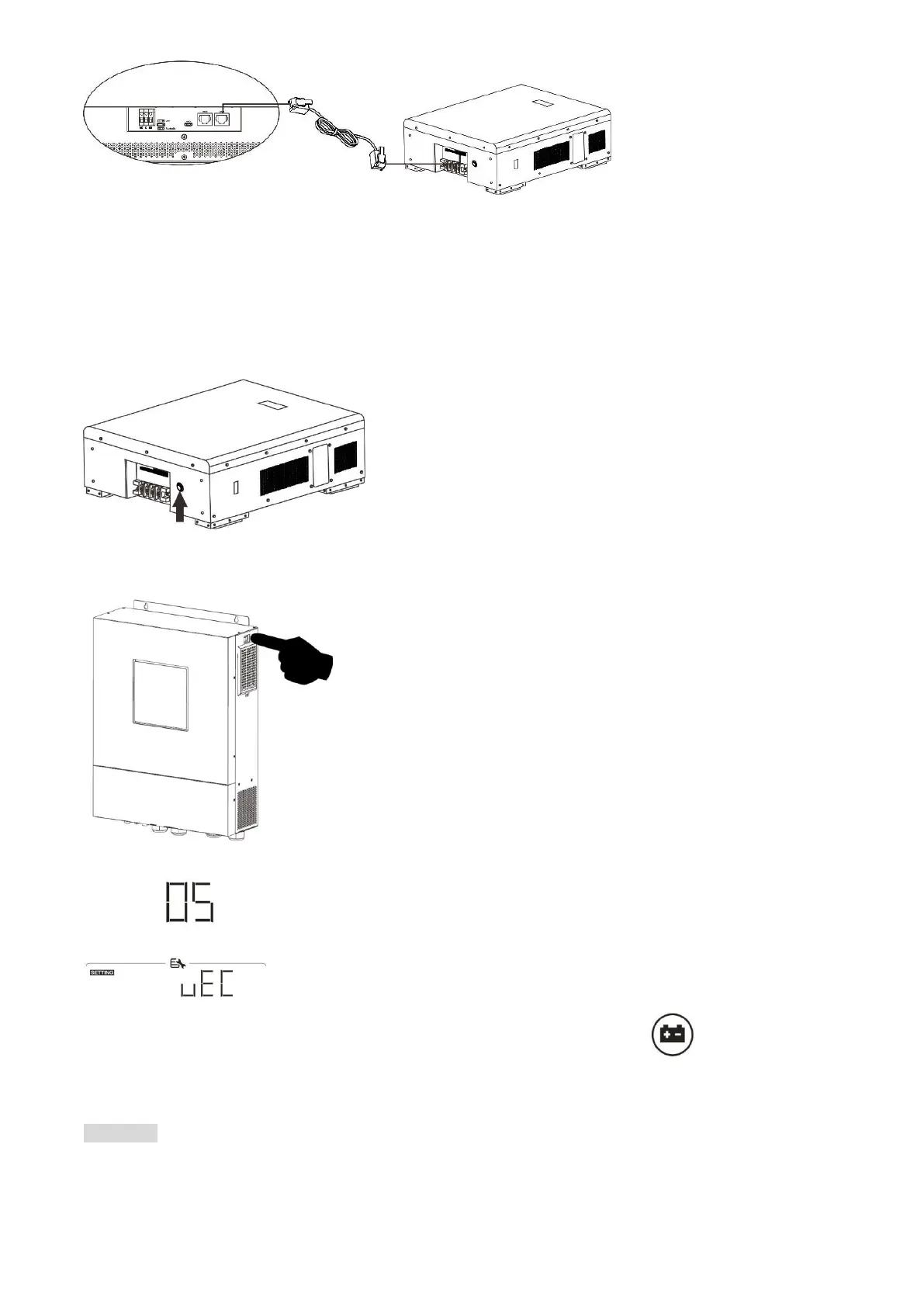 If communication between the inverter and battery is successful, the battery icon on LCD display will