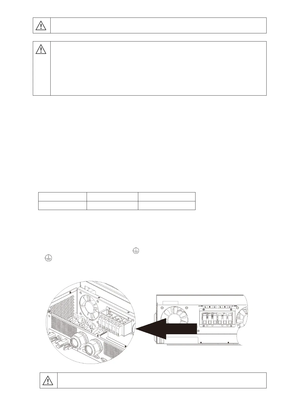 WARNING! It's very important for system safety and efficient operation to use appropriate cable for AC