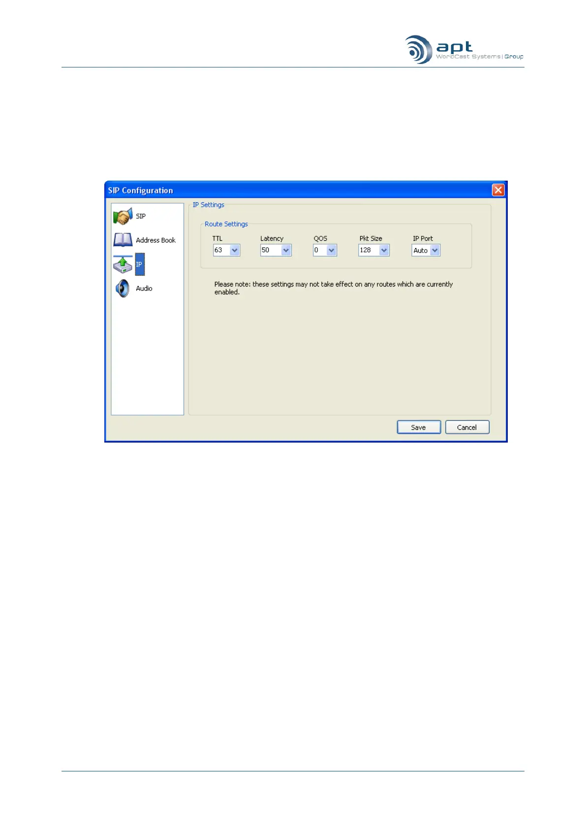 These settings such as TTL, latency, QoS, packet size and IP port can all be set at desired options. If the IP