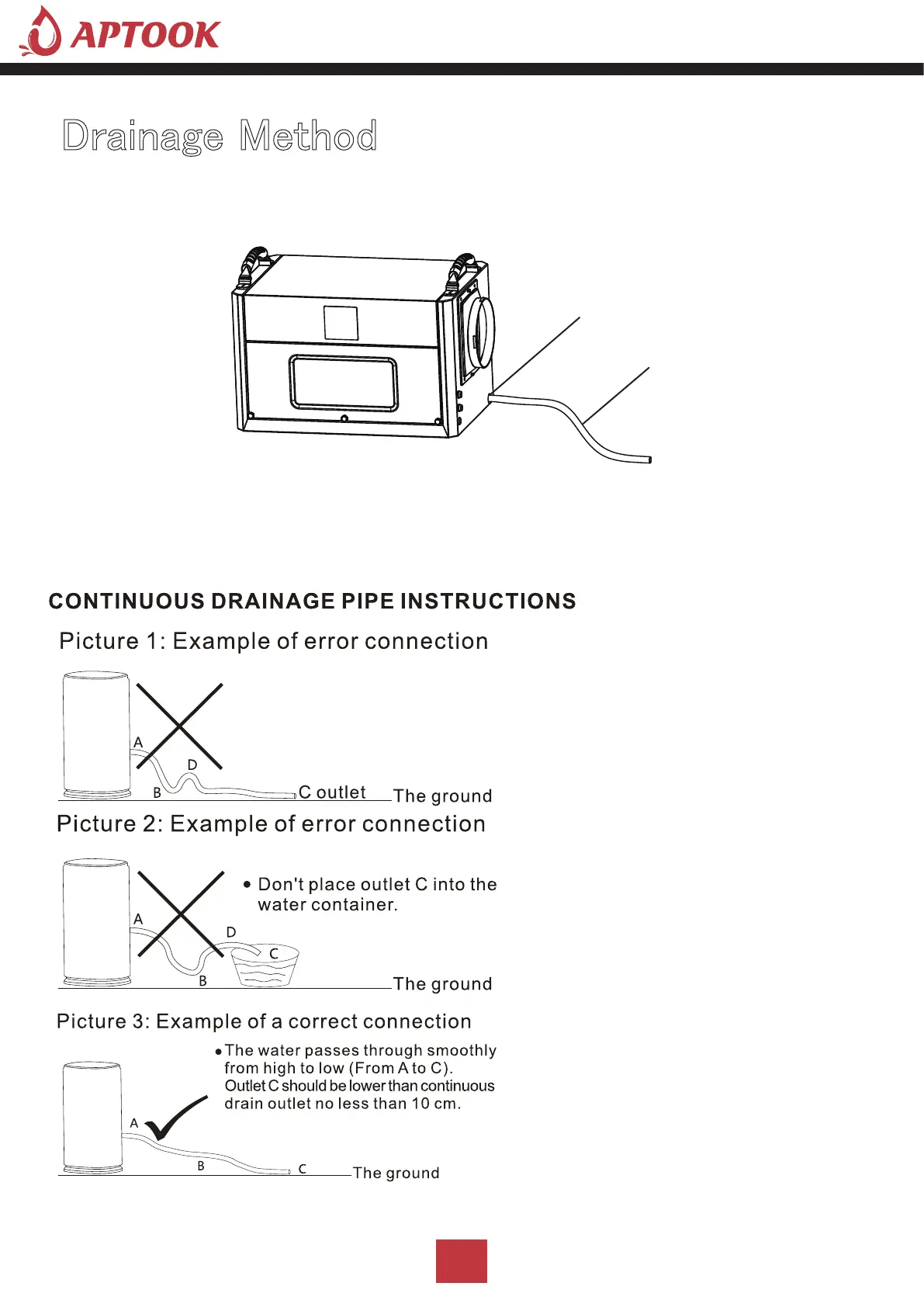 Operation instructions: When using the water pipe drainage method, connect the water pipe at the drain,