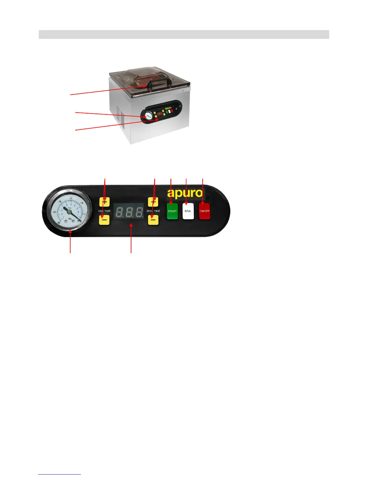 After closing the lid, press “Start” button. The machine will vacuum and seal automatically.
