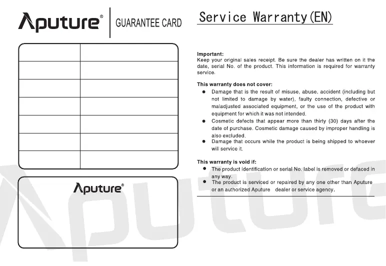 Aputure Imaging Industries Co., Ltd. warrants the original consumer purchaser