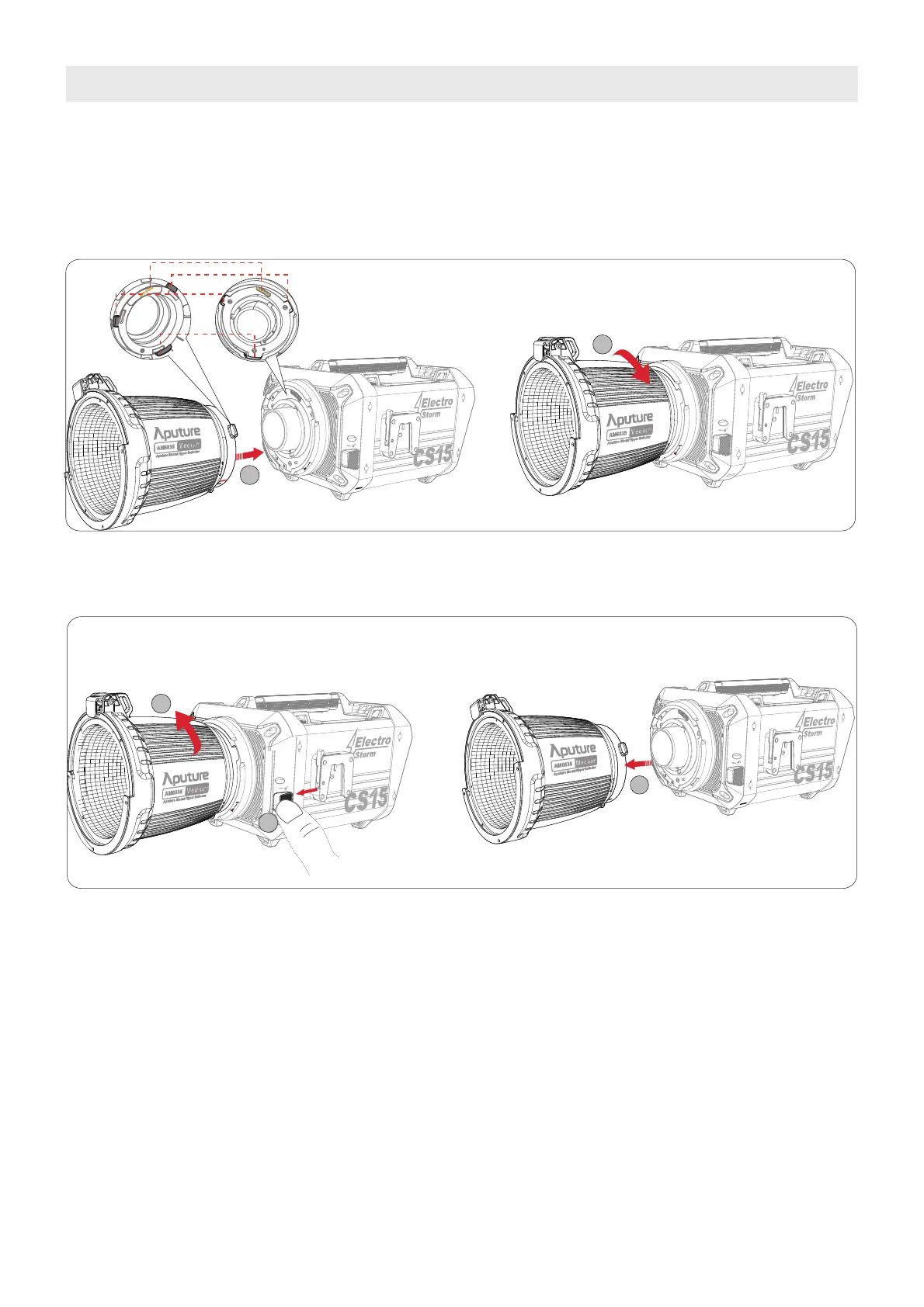 Aputure Electro Storm CS15 - Installation and Disassembly of Standard Reflector;Barn Doors Adapter